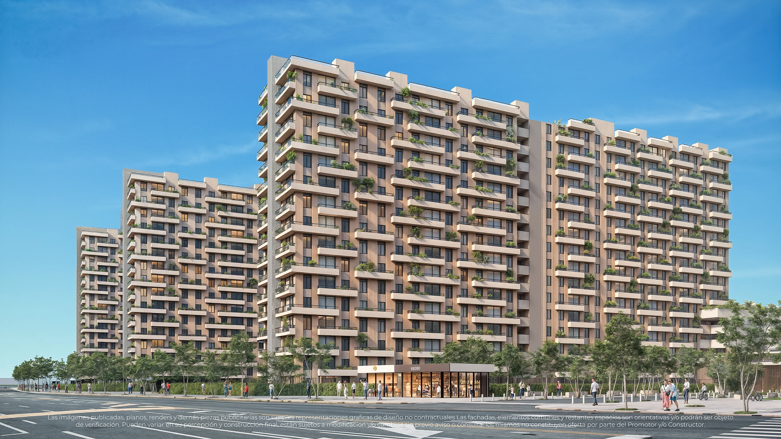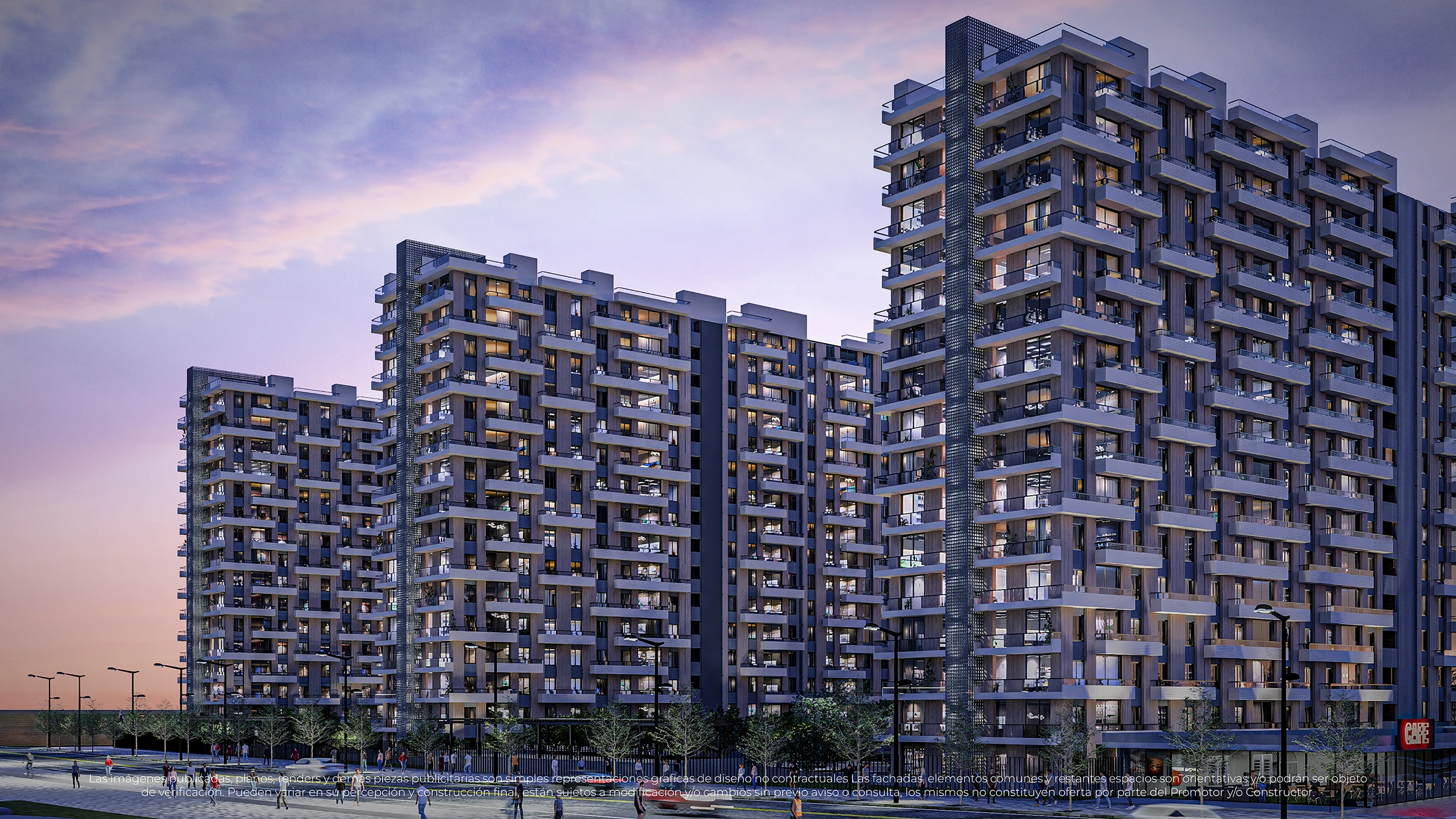 • Tres torres de 16 pisos